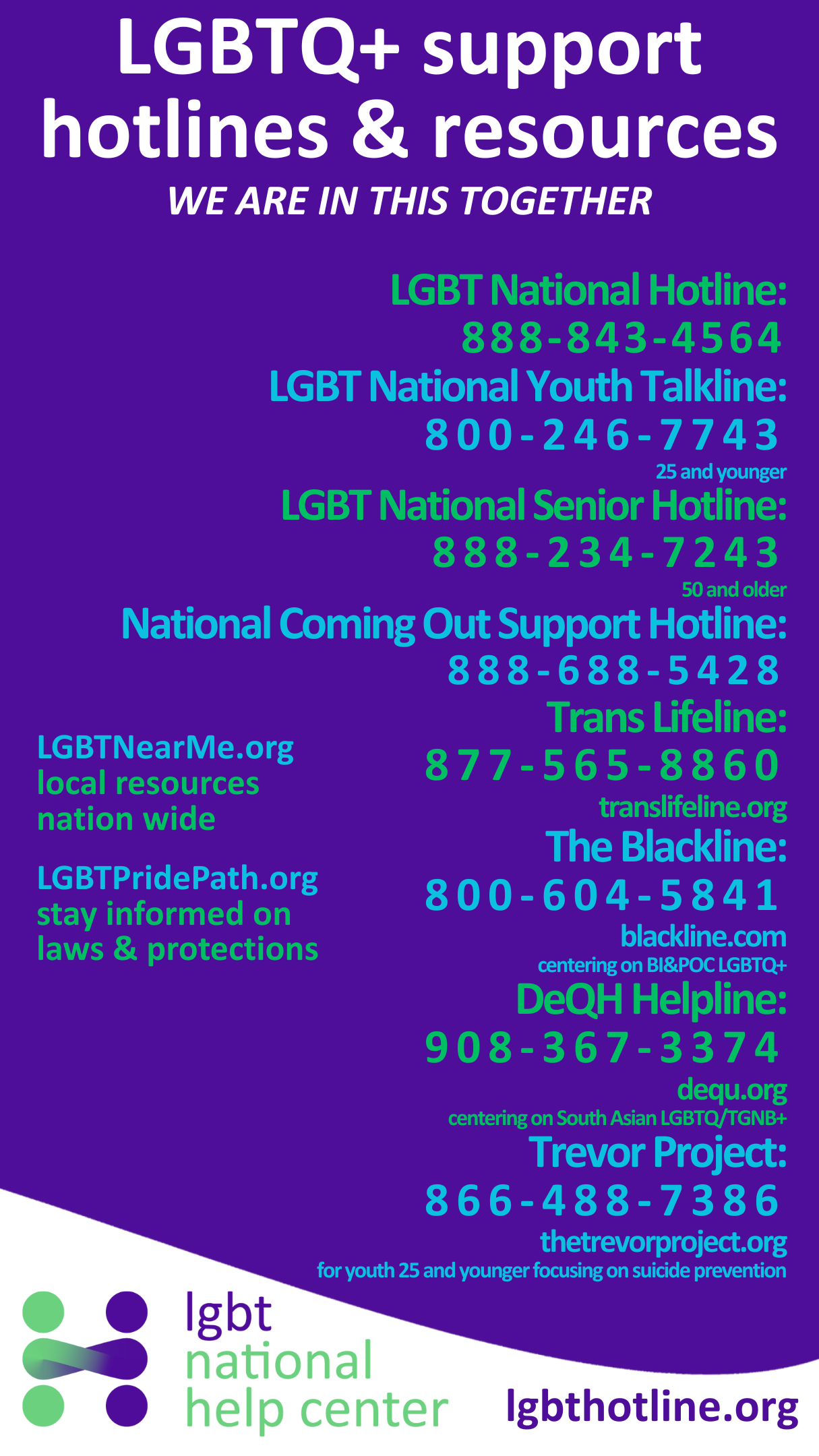 We want to make sure you know there additional lines of support and ways of finding community.
